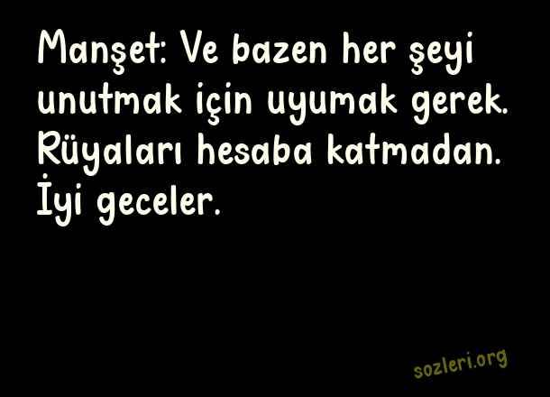 Manşet: Ve bazen her şeyi unutmak için uyumak gerek. Rüyaları hesaba katmadan. İyi geceler. ( Etkileyici İyi Geceler )