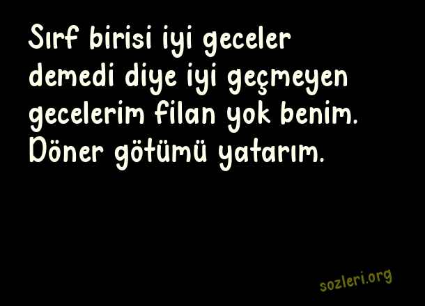 Sırf birisi iyi geceler demedi diye iyi geçmeyen gecelerim filan yok benim. Döner götümü yatarım. ( Komik İyi Geceler )