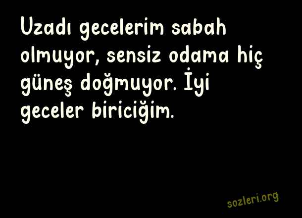 Uzadı gecelerim sabah olmuyor, sensiz odama hiç güneş doğmuyor. İyi geceler biriciğim. ( İyi Geceler )