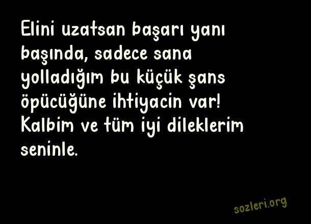 Elini uzatsan başarı yanı başında, sadece sana yolladığım bu küçük şans öpücüğüne ihtiyacin var! Kalbim ve tüm iyi dileklerim seninle. ( İyi Şanslar )