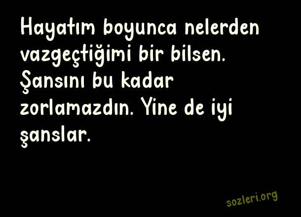 Hayatım boyunca nelerden vazgeçtiğimi bir bilsen. Şansını bu kadar zorlamazdın. Yine de iyi şanslar. ( İyi Şanslar )