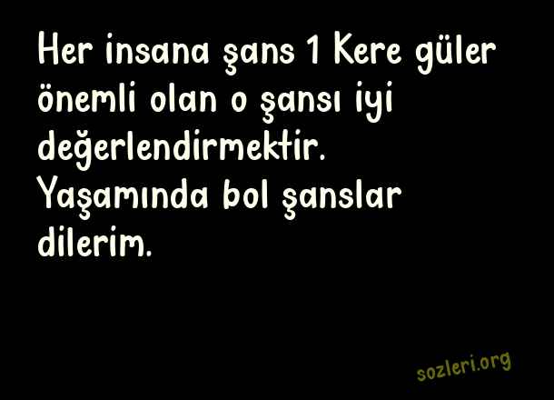 Her insana şans 1 Kere güler önemli olan o şansı iyi değerlendirmektir. Yaşamında bol şanslar dilerim. ( İyi Şanslar )
