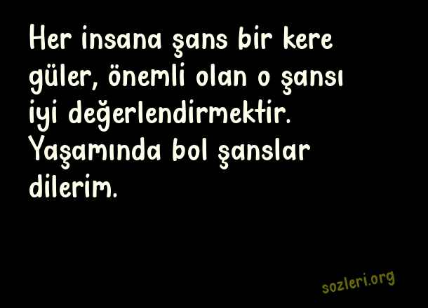 Her insana şans bir kere güler, önemli olan o şansı iyi değerlendirmektir. Yaşamında bol şanslar dilerim. ( İyi Şanslar )