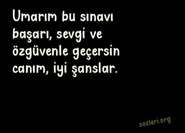 Umarım bu sınavı başarı, sevgi ve özgüvenle geçersin canım, iyi şanslar. ( İyi Şanslar )