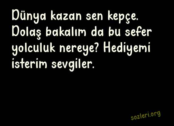 Dünya kazan sen kepçe. Dolaş bakalım da bu sefer yolculuk nereye? Hediyemi isterim sevgiler. ( İyi Yolcuklar )