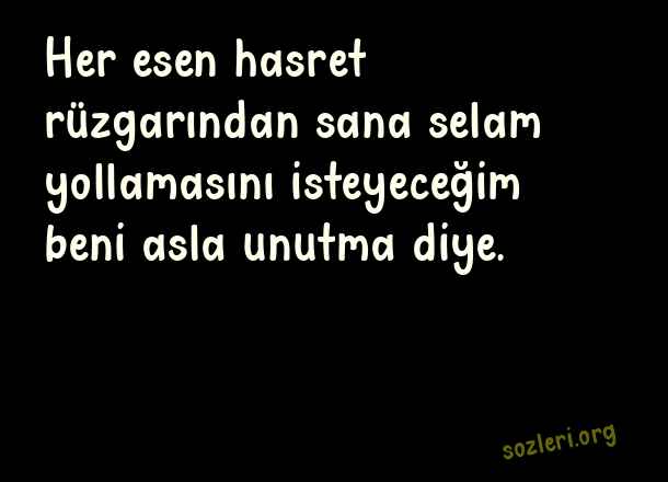 Her esen hasret rüzgarından sana selam yollamasını isteyeceğim beni asla unutma diye. ( İyi Yolcuklar )
