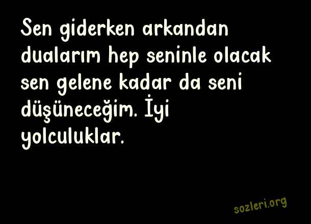 Sen giderken arkandan dualarım hep seninle olacak sen gelene kadar da seni düşüneceğim. İyi yolculuklar. ( İyi Yolcuklar )