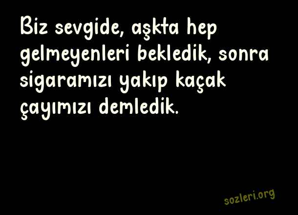Biz sevgide, aşkta hep gelmeyenleri bekledik, sonra sigaramızı yakıp kaçak çayımızı demledik. ( Kabadayı )