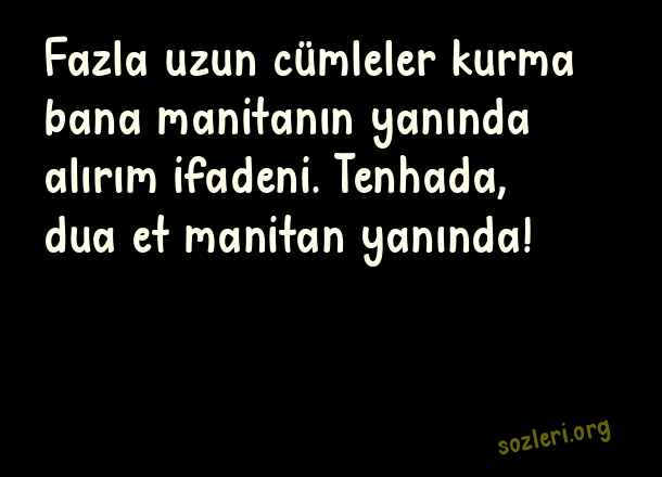 Fazla uzun cümleler kurma bana manitanın yanında alırım ifadeni. Tenhada, dua et manitan yanında! ( Kabadayı )