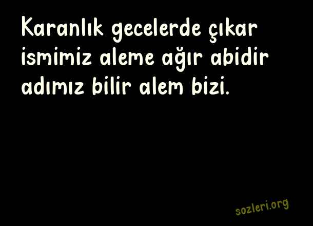 Karanlık gecelerde çıkar ismimiz aleme ağır abidir adımız bilir alem bizi. ( Kabadayı )