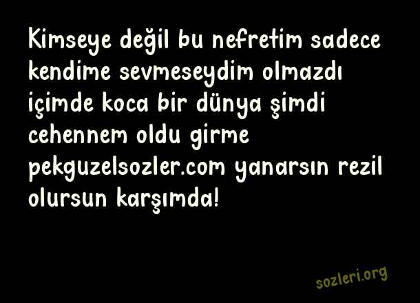 Kimseye değil bu nefretim sadece kendime sevmeseydim olmazdı içimde koca bir dünya şimdi cehennem oldu girme yanarsın rezil olursun karşımda! ( Kabadayı )