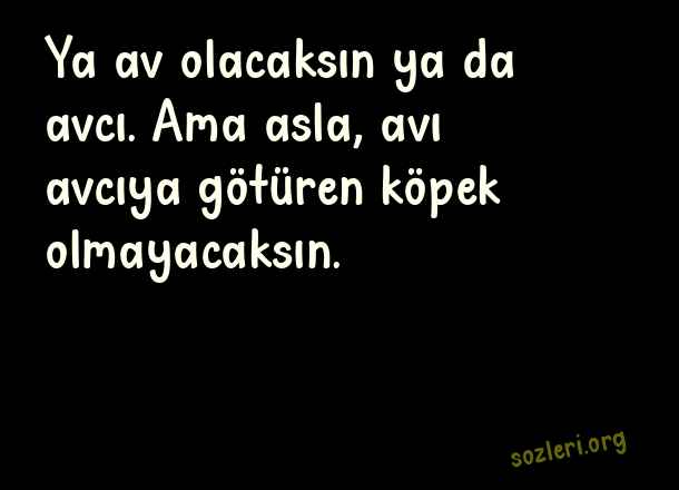 Ya av olacaksın - Kabadayı Sözleri .. Ya av olacaksın ya da avcı. Ama asla, avı avcıya götüren köpek olmayacaksın. ( Kabadayı )
