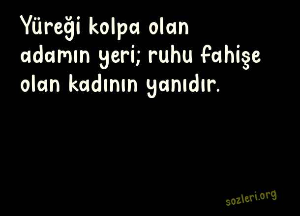 Yüreği kolpa olan adamın yeri; ruhu fahişe olan kadının yanıdır. ( Kabadayı )