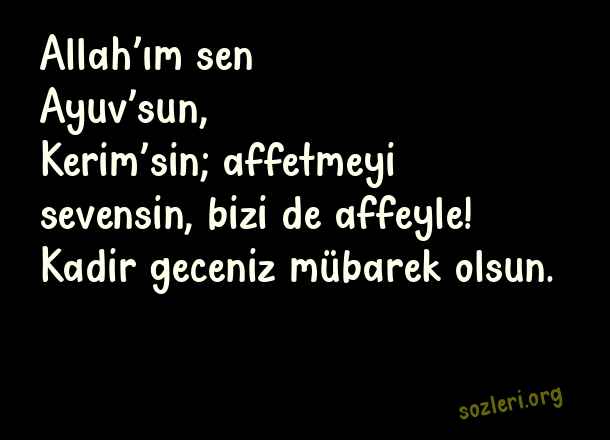 Allah’ım sen Ayuv’sun, Kerim’sin; affetmeyi sevensin, bizi de affeyle! Kadir geceniz mübarek olsun. ( Kadir Gecesi İçin Güzel Sözler )