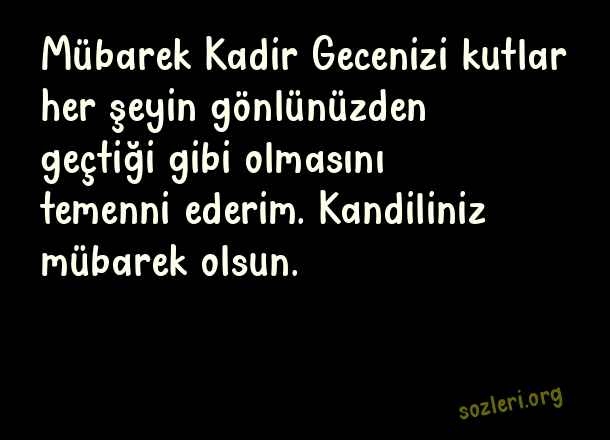 Mübarek Kadir Gecenizi kutlar her şeyin gönlünüzden geçtiği gibi olmasını temenni ederim. Kandiliniz mübarek olsun. ( Kadir Gecesi İçin Güzel Sözler )