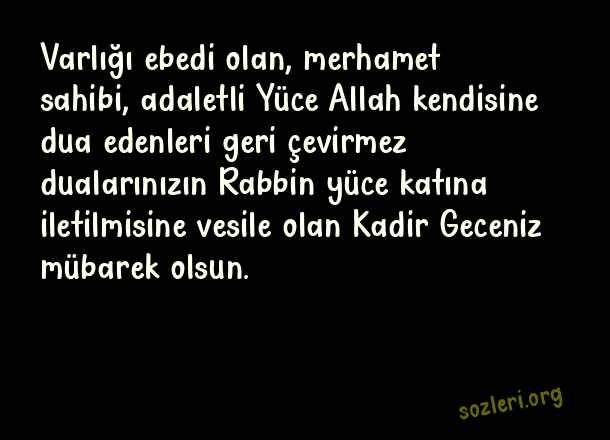 Varlığı ebedi olan, merhamet sahibi, adaletli Yüce Allah kendisine dua edenleri geri çevirmez dualarınızın Rabbin yüce katına iletilmisine vesile olan Kadir Geceniz mübarek olsun. ( Kadir Gecesi Telefon )