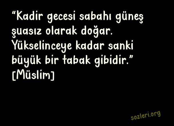 “Kadir gecesi sabahı güneş şuasız olarak doğar. Yükselinceye kadar sanki büyük bir tabak gibidir.” [Müslim] ( Kadir Gecesinde Neler Yapılır )