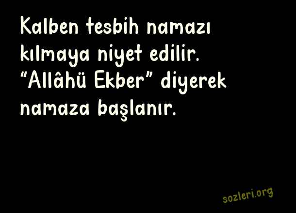 Kalben tesbih namazı kılmaya niyet edilir. “Allâhü Ekber” diyerek namaza başlanır. ( Kadir Gecesinde Neler Yapılır )