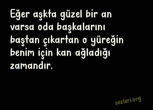 Eğer aşkta güzel bir an varsa oda başkalarını baştan çıkartan o yüreğin benim için kan ağladığı zamandır. ( Kalbe Dokunan Aşk )