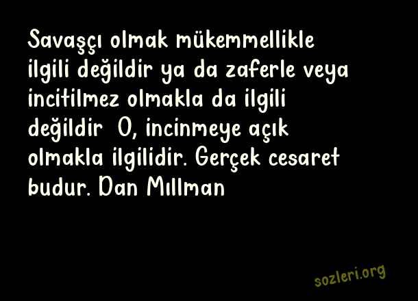 Savaşçı olmak mükemmellikle ilgili değildir ya da zaferle veya incitilmez olmakla da ilgili değildir… O, incinmeye açık olmakla ilgilidir. Gerçek cesaret budur. Dan Mıllman ( Kanser )