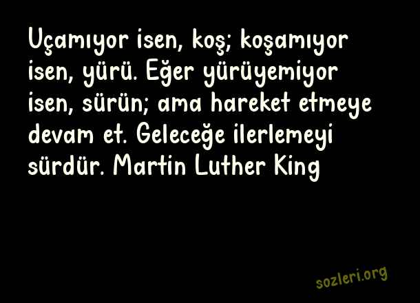 Uçamıyor isen, koş; koşamıyor isen, yürü. Eğer yürüyemiyor isen, sürün; ama hareket etmeye devam et. Geleceğe ilerlemeyi sürdür. Martin Luther King ( Kanser )