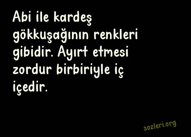 Abi ile kardeş gökkuşağının renkleri gibidir. Ayırt etmesi zordur birbiriyle iç içedir. ( Kardeşten Abiye Güzel Sözler )