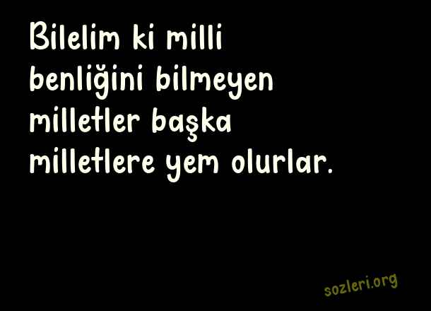 Bilelim ki milli benliğini bilmeyen milletler başka milletlere yem olurlar. ( Kemalist Sözler )