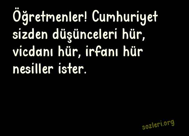 Öğretmenler! Cumhuriyet sizden düşünceleri hür, vicdanı hür, irfanı hür nesiller ister. ( Kemalist Sözler )