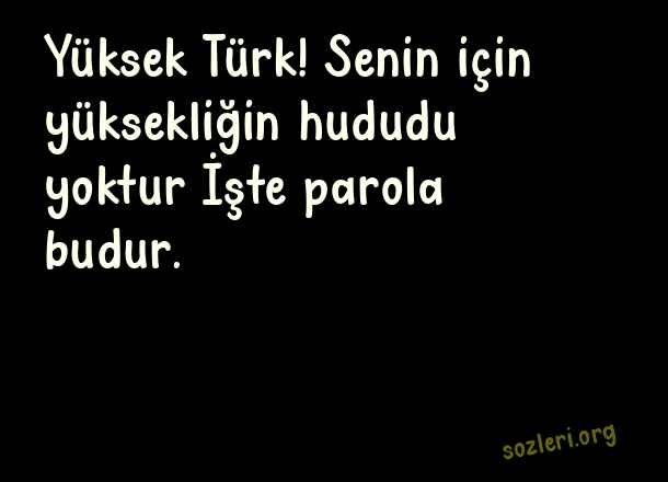 Yüksek Türk! Senin için yüksekliğin hududu yoktur İşte parola budur. ( Kemalist Sözler )