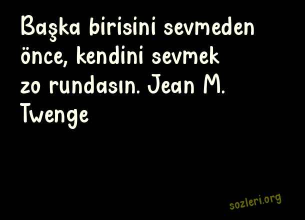 Başka birisini sevmeden önce, kendini sevmek zorundasın. Jean M. Twenge ( Kendini Sevmek İle ilgili Sözler )