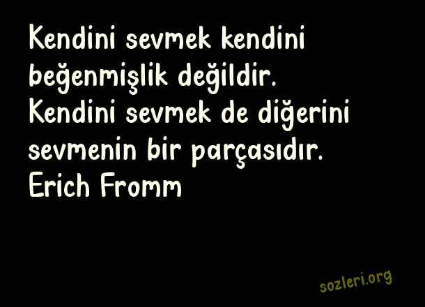 Kendini sevmek kendini beğenmişlik değildir. Kendini sevmek de diğerini sevmenin bir parçasıdır. Erich Fromm ( Kendini Sevmek İle ilgili Sözler )