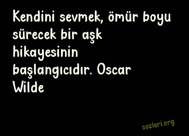 Kendini sevmek, ömür boyu sürecek bir aşk hikayesinin başlangıcıdır. Oscar Wilde ( Kendini Sevmek İle ilgili Sözler )