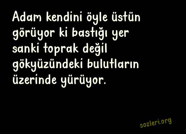Adam kendini öyle üstün görüyor ki bastığı yer sanki toprak değil gökyüzündeki bulutların üzerinde yürüyor. ( Kendini Vazgeçilmez Sananlara Sözler )