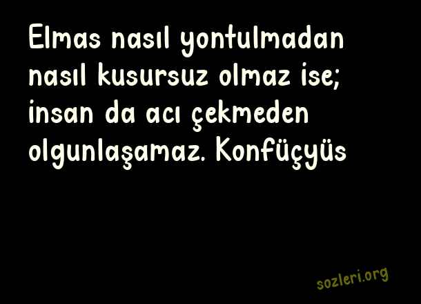 Elmas nasıl yontulmadan nasıl kusursuz olmaz ise; insan da acı çekmeden olgunlaşamaz. Konfüçyüs ( Kendini Vazgeçilmez Sananlara Sözler )