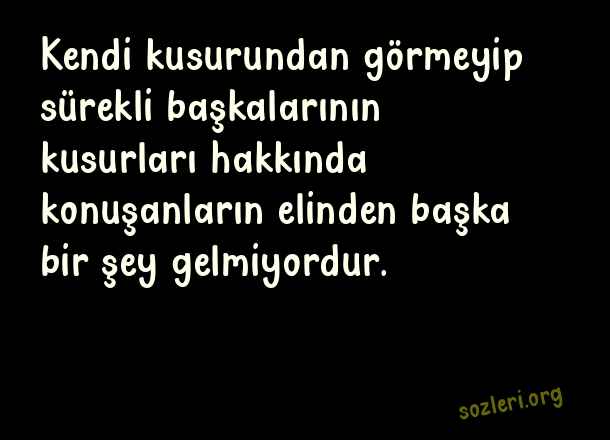 Kendi kusurundan görmeyip sürekli başkalarının kusurları hakkında konuşanların elinden başka bir şey gelmiyordur. ( Kendini Vazgeçilmez Sananlara Sözler )