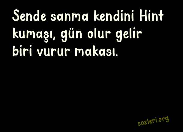 Sende sanma kendini Hint kumaşı, gün olur gelir biri vurur makası. ( Kendini Vazgeçilmez Sananlara Sözler )