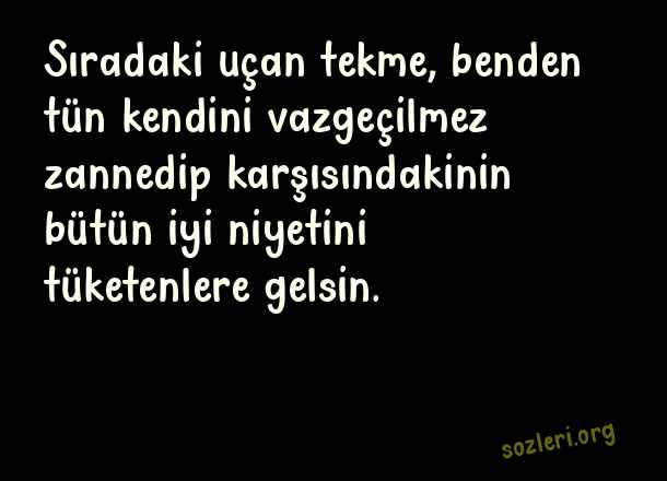 Sıradaki uçan tekme, benden tün kendini vazgeçilmez zannedip karşısındakinin bütün iyi niyetini tüketenlere gelsin. ( Kendini Vazgeçilmez Sananlara Sözler )