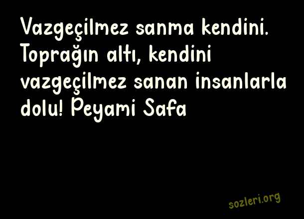 Vazgeçilmez sanma kendini. Toprağın altı, kendini vazgeçilmez sanan insanlarla dolu! Peyami Safa ( Kendini Vazgeçilmez Sananlara Sözler )
