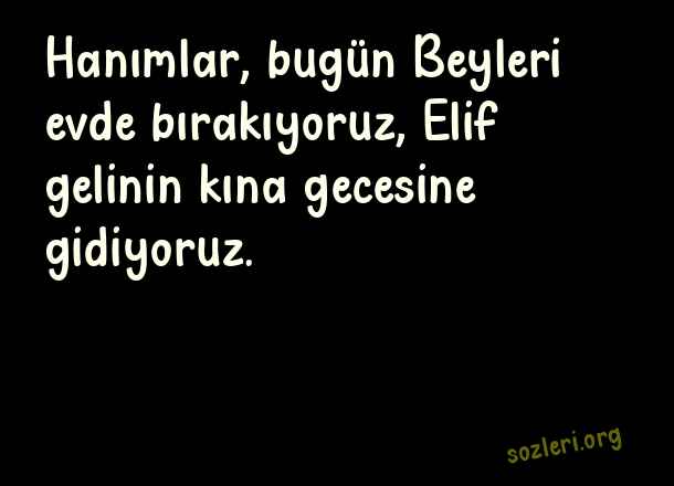 Hanımlar, bugün beyleri evde bırakıyoruz, (Gelinin ismi) gelinin kına gecesine gidiyoruz.