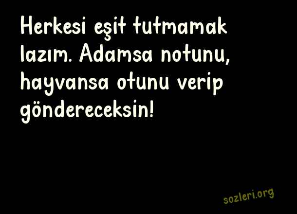Herkesi eşit tutmamak lazım. Adamsa notunu, hayvansa otunu verip göndereceksin! ( Kırıcı Sözler )