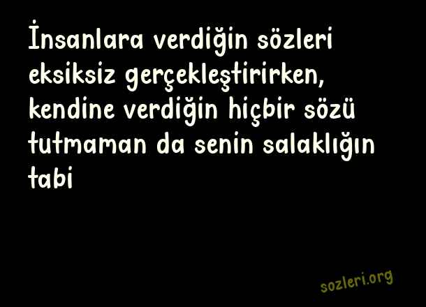 İnsanlara verdiğin sözleri eksiksiz gerçekleştirirken, kendine verdiğin hiçbir sözü tutmaman da senin salaklığın tabi… ( Kırıcı Sözler )