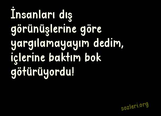 İnsanları dış görünüşlerine göre yargılamayayım dedim, içlerine baktım bok götürüyordu! ( Kırıcı Sözler )