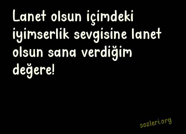 Seni sevdiğim güne lanet olsun, sana verdiğim değere yazıklar olsun… Seni tutan ellerim kırılsın, seni seven kalbim dursun, seni gören gözlerim kör olsun… En önemlisi bu hayatta seni tanıdım ya bu hayata lanet olsun… Senden nefret ediyor