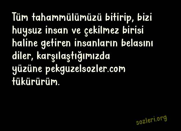 Tüm tahammülümüzü bitirip, bizi huysuz insan ve çekilmez birisi haline getiren insanların belasını diler, karşılaştığımızda yüzüne tükürürüm. ( Kırıcı Sözler )