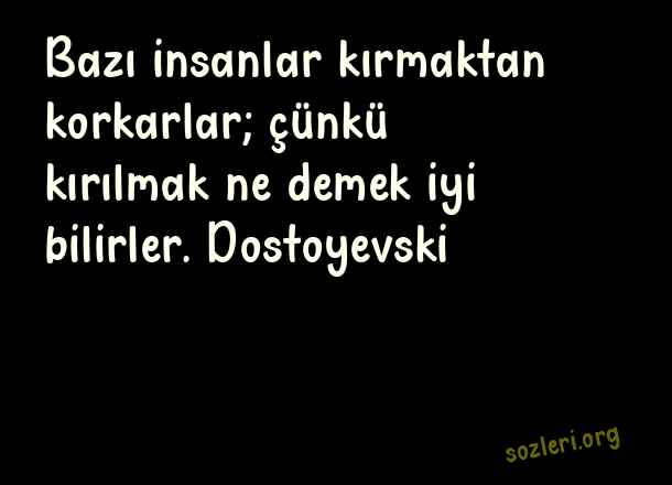 Bazı insanlar kırmaktan korkarlar; çünkü kırılmak ne demek iyi bilirler. Dostoyevski ( Kırıldığını Anlatan Sözler )