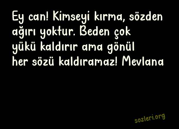 Ey can! Kimseyi kırma, sözden ağırı yoktur. Beden çok yükü kaldırır ama gönül her sözü kaldıramaz! Mevlana ( Kırıldığını Anlatan Sözler )