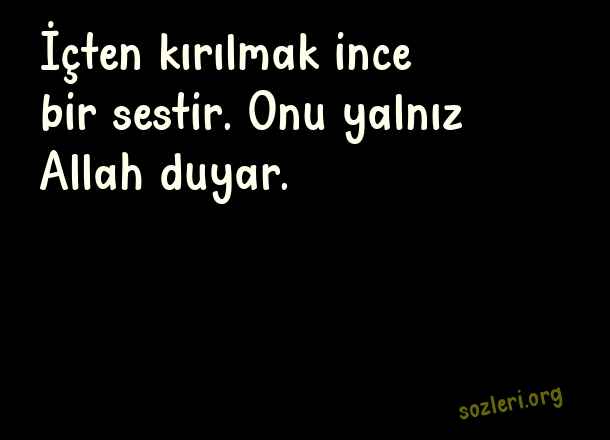 İçten kırılmak ince bir sestir. Onu yalnız Allah duyar. ( Kırıldığını Anlatan Sözler )