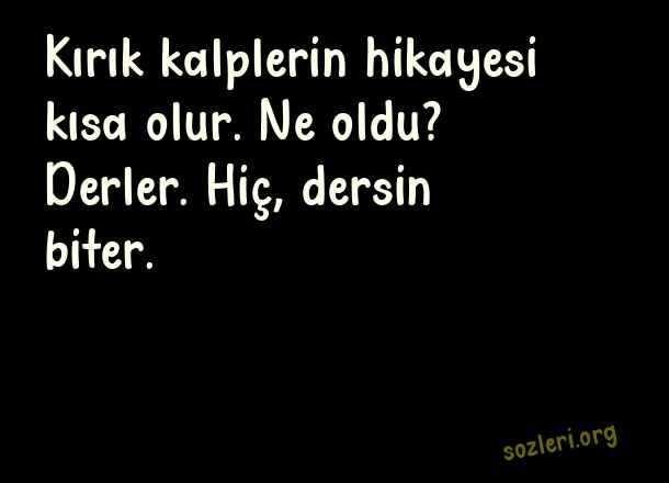 Kırık kalplerin hikayesi kısa olur. Ne oldu? Derler. Hiç, dersin biter. ( Kırıldığını Anlatan Sözler )