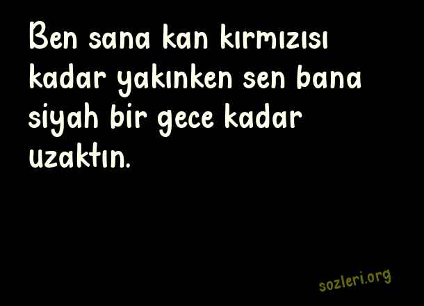 Ben sana kan kırmızısı kadar yakınken sen bana siyah bir gece kadar uzaktın. ( Kırmızı )