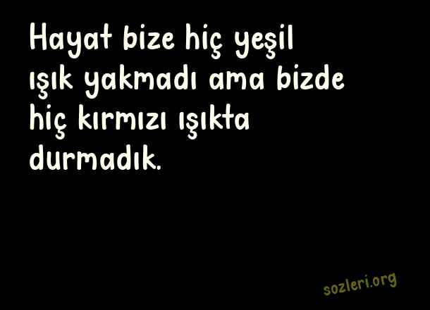 Hayat bize hiç yeşil ışık yakmadı ama bizde hiç kırmızı ışıkta durmadık. ( Kırmızı )